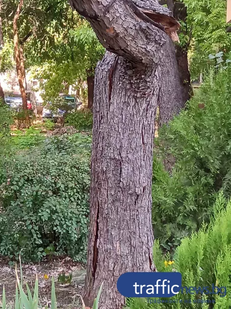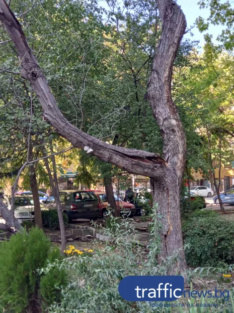 „Тази нощ падна огромен клон, а се вижда, че и стволът вече е разцепен. Сигнали към ОП „Градини и паркове“ са подадени още преди 2 години. Трябва ли някой да пострада, за да се вземат мерки?“, пита читател в сигнала си.
