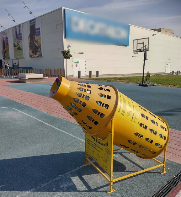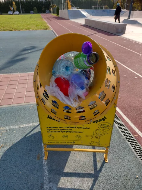 „Шишеяд“, предназначен само за пластмасови бутилки, в Пловдив се превърна в обикновен кош за смет. Въпреки показателната форма му на огромна бутилка и ясното обозначение, вътре се трупат какви ли не отпадъци. За това сигнализира пловдивчанин, който е възмутен от липсата на елементарна култура при разделното събиране. Той е заснел съоръжението, което събира пластмасови бутилки в двора на голям спортен магазин в Тракия.