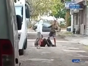 Грозна сцена на пътна агресия се разигра в Пловдив. В социалната мрежа TikTok се появи видео, на което ясно се вижда как шофьор на пътнически бус и колоездач влизат в открито физическо сблъсък. Кадрите, заснети на Карловско шосе – точно пред ретейл парк – показват как двамата мъже си разменят удари на пътното платно.
