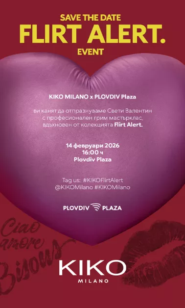 По време на събитието консултантите по красота на KIKO MILANO ще разкрият тайните на перфектната визия за Свети Валентин, като представят новата лимитирана колекция Flirt Alert- смела, романтична и създадена да подчертае индивидуалността и увереността на всяка дама. Гостите ще се насладят на демонстрация на живо, практически съвети и ще получат отговори на всички свои въпроси, свързани с грима и продуктите.