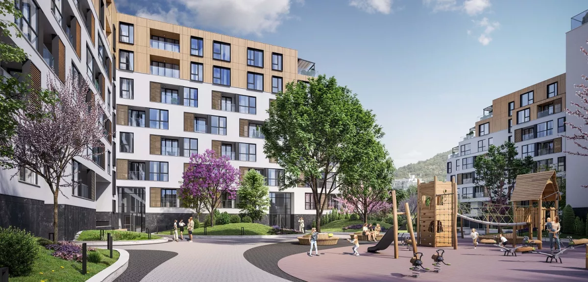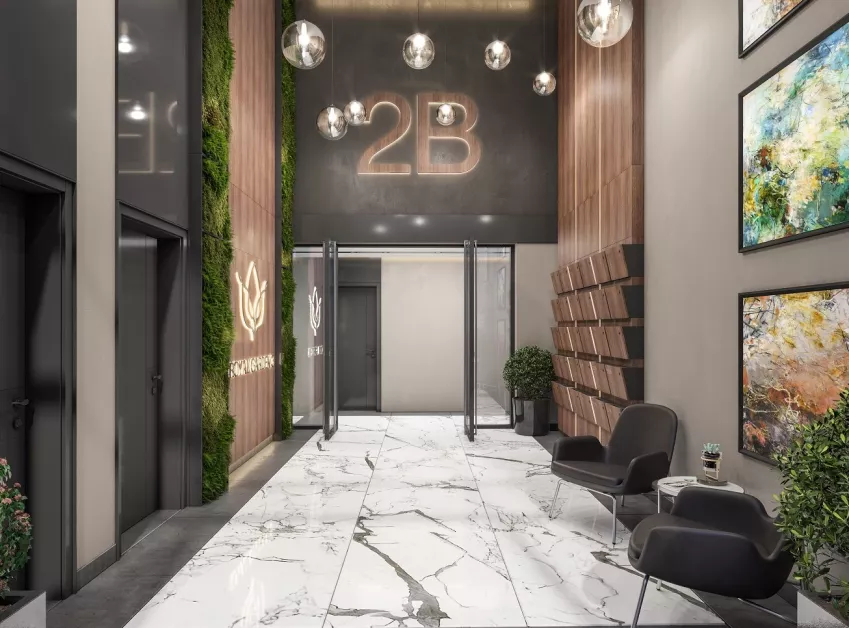 Сградите впечатляват с луксозни фоайета и общи части, а интериорът им комбинира естествени тонове, прецизни детайли и ефектно осветление, създаващи усещане за елегантен дом още от входа. Цялостният архитектурен облик на комплекса ще се допълва от живописна и целогодишно поддържана градина, с места за отдих и зона за забавление за най-малките обитатели на комплекса.