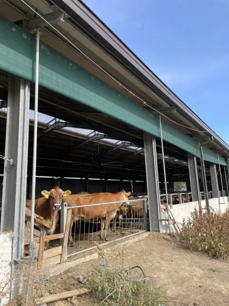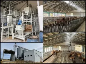 Комплексът включва кравеферма с площ над 1 350 кв.м., сеновал с площ над 1 000 кв.м., силажни ями, торова лагуна, сепаратор и бетонови площадки, изградени съгласно одобрен генерален план и разрешение за строеж. Общата застроена площ на сградите и съоръженията надхвърля 4 100 кв.м.