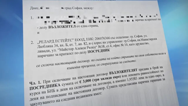 „Хареса ни обявата, цената беше твърдо под пазарната, обадихме се на въпросната агенция като частни лица. Фирмата се казва „Релард Естейтс“. Цветелина Денкова се казва собственичката. Малко, след като сключихме това споразумение, започнаха нещата да се затлачват“, разказва той.