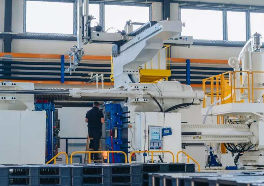 Имплементирането на модел за влагане на регранулата в крайни пластмасови изделия намалява зависимостта от първични суровини, оптимизира разходите на бизнеса и значително свива въглеродния отпечатък на продукцията. В основата му стои прецизно рециклиране на полипропилен (PP) и полиетилен (PE) – материали, които след обработка се използват в ключовия продукт на групата: пластмасови транспортни палети.