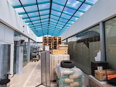 В същия имот се намира и втора сграда – „Търговски комплекс с магазини и здравни кабинети“, с разгъната застроена площ 2230,90 кв.м., построена на три нива. На сутеренния етаж има хладилни камери, помещения за обработка на зеленчуци, складове и битова част за персонала.