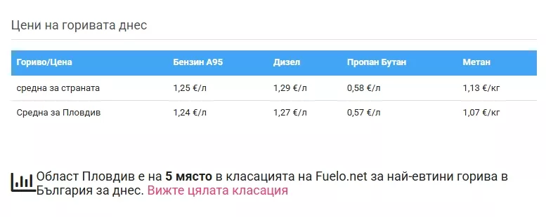 Според класацията на Fuelo област Пловдив се нарежда на пето място в страната по най-евтини горива.