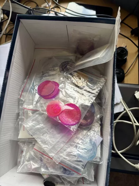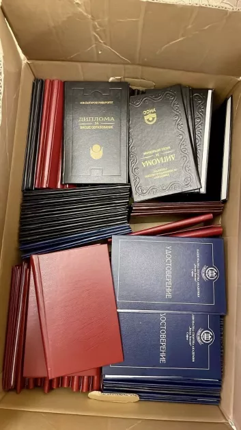 При извършените действия по разследването са открити множество празни бланки, заготовки, печати на различни университети, училища, нотариуси и частни фирми, както и материали и специализирана техника за дигитален печат.