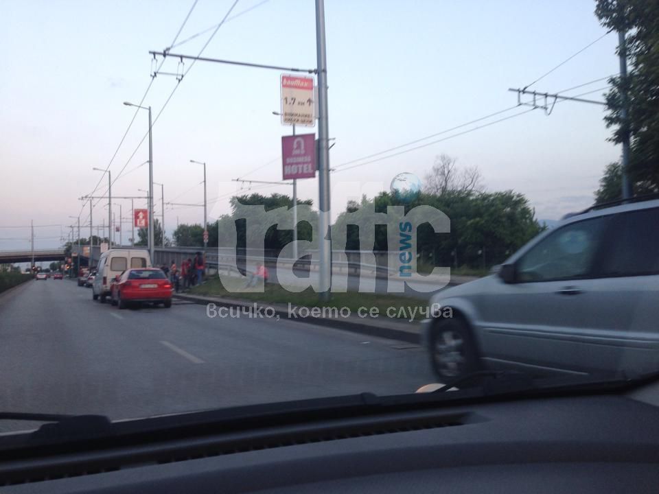 Верижна катастрофа стана преди минути на надлез Родопи, видя репортер на TrafficNews.bg. Единият от автомобилите намалил скоростта, за да спре на пешеходец в участъка след Сточна гара, посока "Тракия", когато лекият автомобил зад него се натресъл на задницата му.