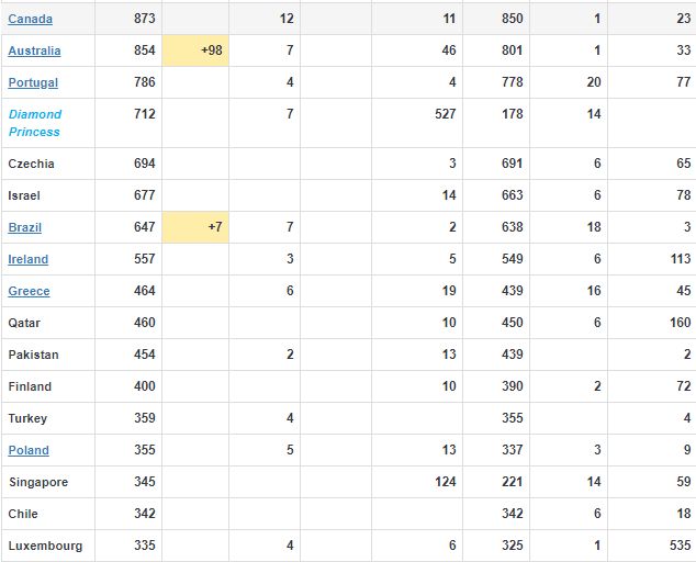 Докато в Китай активните случаи са вече едва около 6570, то в Италия са над 33 хиляди. Испания, Германия и Франция вървят по същия опасен сценарий със случаи съответно - 18 хил. с 831 жертви, 15 хил. с 44 жертви, 11 хил. с 371 жертви. Пандемията настъпва и в САЩ, където случаите са 14 366, а от тях има вече над 200 мъртви.