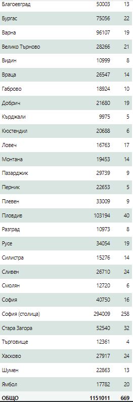 Заразени по Oбласти: