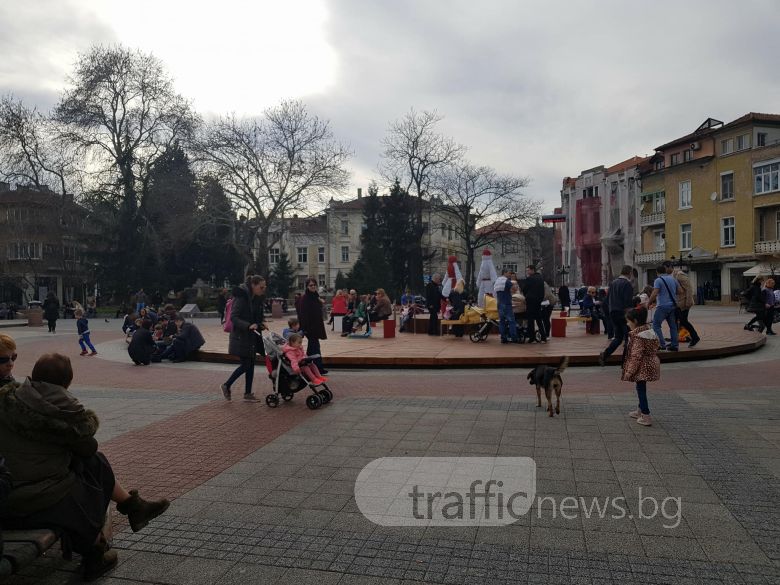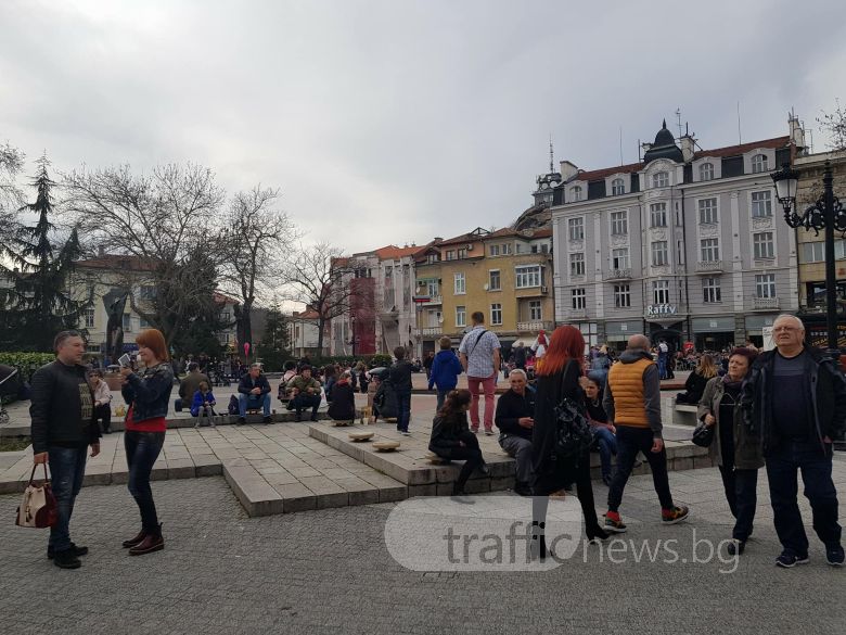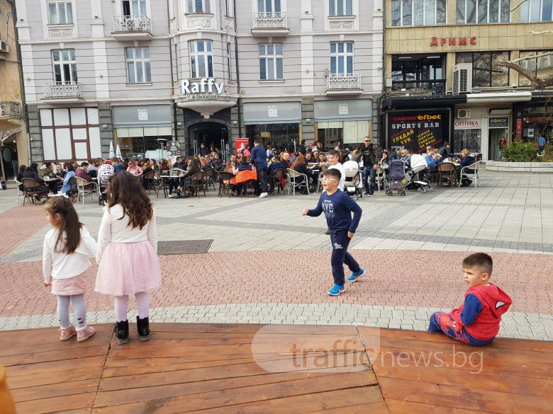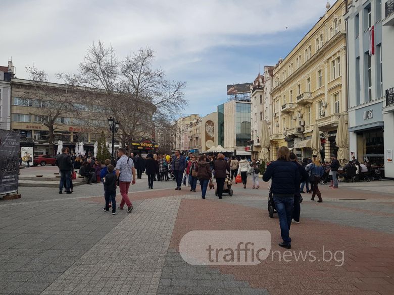 Главната улица на Пловдив остава блокирана от ранния обед, когато стотици решиха да излязат за слънчева разходка през един от първите топли уикенди за годината.