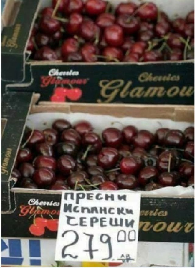 Снимка на космическа цена на череши главоломно се разпространи из социалните медии, според нея килограмът струва 279 лева. Дали това наистина е така и кой е готов да плати тази сума не е ясно.