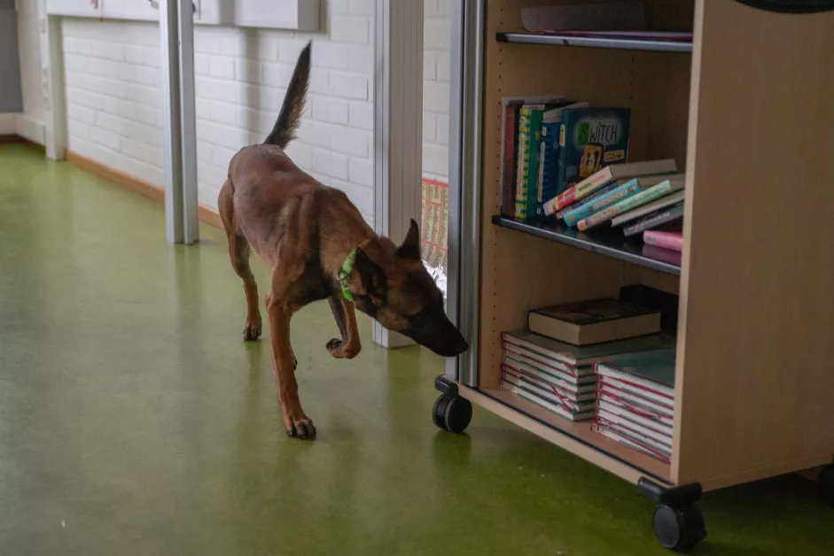 „Идеята е всяко укрито вещество да бъде открито, независимо дали се намира в специализиран транспорт, цирк, зоопарк или склад. Кучето не трябва да се притеснява от нищо около себе си“, допълва водачът ѝ.