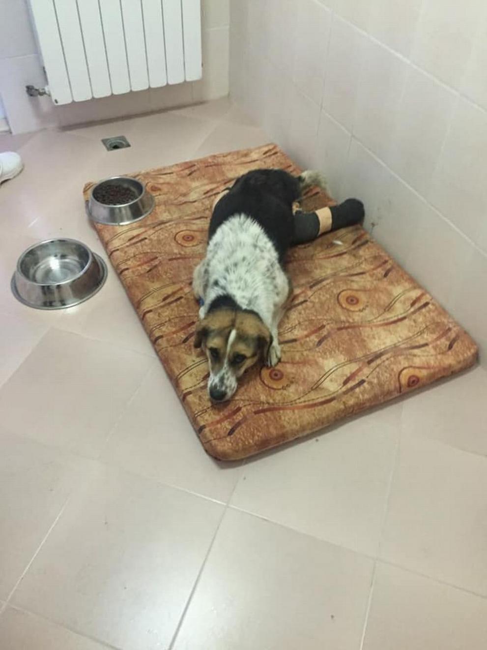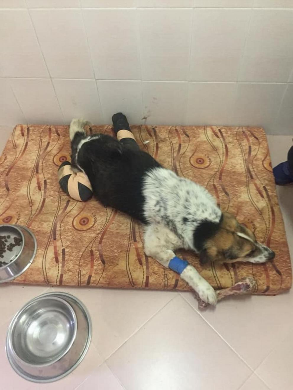 Лекари все още се борят за живота на кучето, което беше открито в отрязани лапи. Животното има тежка инфекция, която сериозно застрашава здравето й.