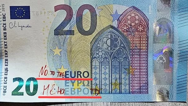 "Народното творчество" не пощади и евробанкнотите. В знак на протест някои хора изписаха нецензурни послания и лозунги върху новите пари, а търговците и банките отказапа да ги приемат, тъй като са "умишлено повредени".