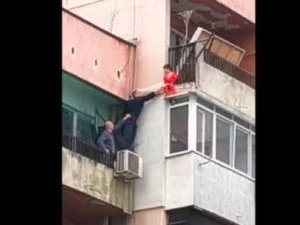 Шокиращите кадри снима Ива Цветанова. На връщане от работа учителката вижда невръстно дете да виси от осмия етаж.