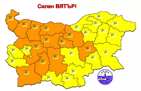 На места поривите на вятъра ще достигат до 80-100 км/ч. В останалата част вятърът ще бъде със скорост до 60-80 км/ч.