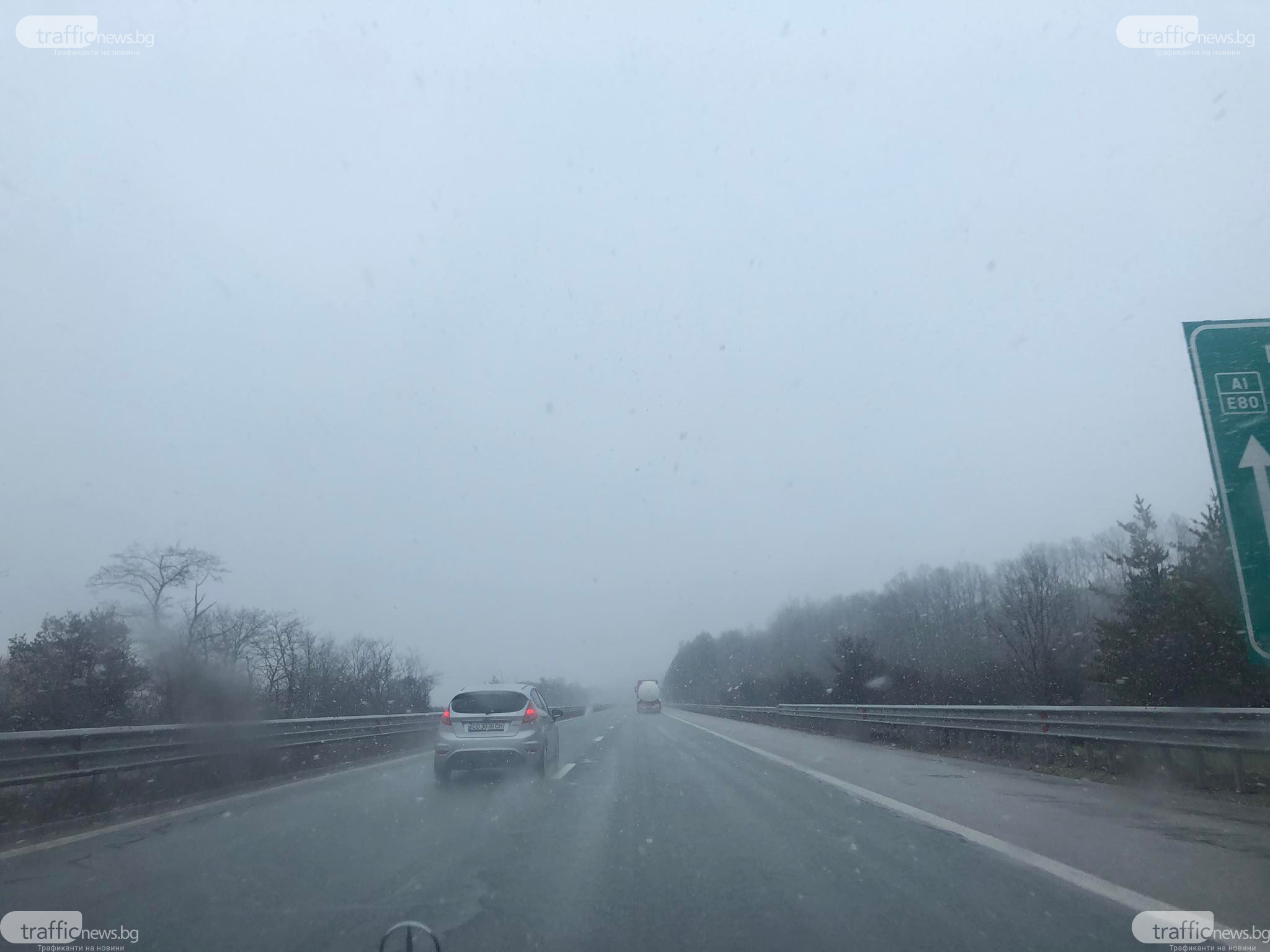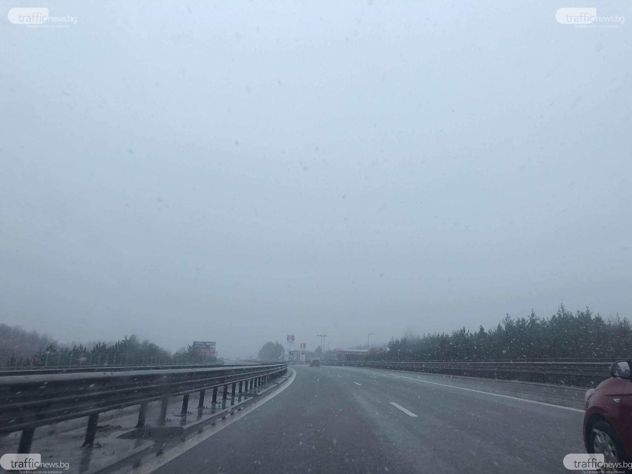 Сняг валя на парцали по АМ „Тракия“ по-рано днес. Това сигнализираха читатели на TrafficNews, които изпратиха снимки до редакцията ни.