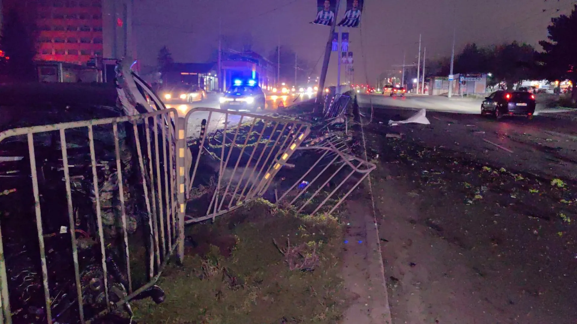 Лек автомобил се е заби в уличен стълб и е отнесе мантинелата в разделителната ивица. Автомобилът е разпилян по пътното платно, а движението е затруднено.