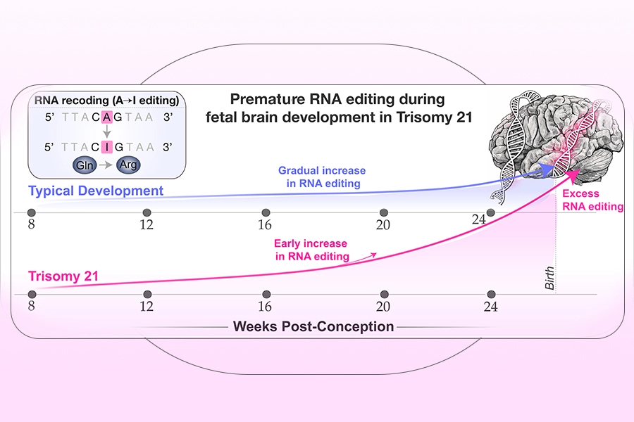 Проучването идентифицира ADARB1-индуцираната дисрегулация на редактирането на РНК като фундаментално молекулярно следствие от утрояването на хромозома 21 при синдром на Даун.