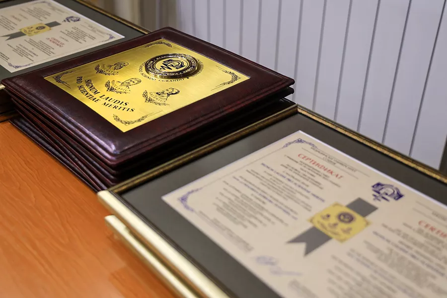 На тържествена церемония днес бяха връчени наградните знаци „SIGNUM LAUDIS PRO SCIENTIAE MERITIS” за най-успешна научна разработка, финансирана от МУ-София чрез конкурсите „Грант’2022” и „Грант’2023”, както и грамоти за най-успешна научна разработка в конкурсите „Млад изследовател’2022” и „Млад изследовател’2023”. Събитието е в чест на Деня на народните будители – 1 ноември.