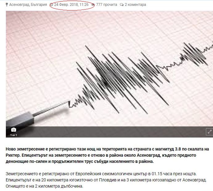 „Новина“, че ново земетресение е станало между Пловдив и Асеновград тази нощ обикаля национални и местни медии. Те гръмнаха, че относително силен трус е станал край Пловдив в 1,15 часа днес, а скалата му е била 3,8 по скалата на Рихтер.