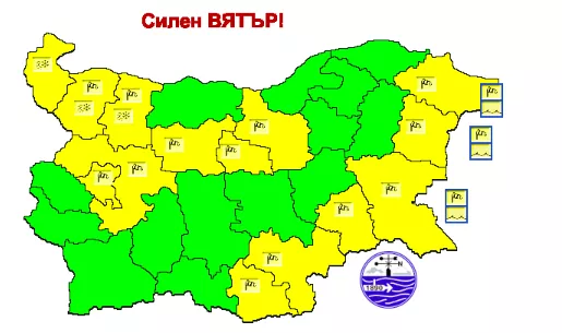 През утрешния ден ще преобладава облачно време. На повече места в западните и северните райони ще има превалявания от дъжд. По най-високите планински части ще превалява сняг. Жълт код е обявен за 3 области заради снеговалежи и силен вятър- Видин, Враца и Монтана. В още 11 области на Северна и Източна България е обявен също жълт код, но само за силен вятър.