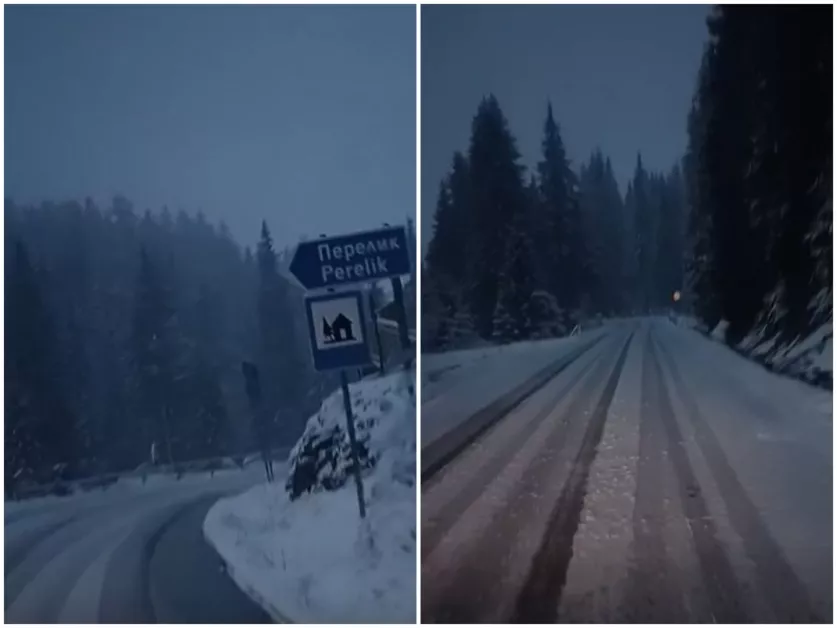 Докато в планината обстановката е снежна, в по-ниските части на областта, вали дъжд.
