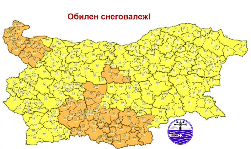 През следващото денонощие ще има повсеместни валежи. Тази нощ дъждът в северозападната част от страната, в Предбалкана и по високите полета на Западна България ще преминава в сняг. По планинските проходи на Стара планина ще има навявания и виелици.