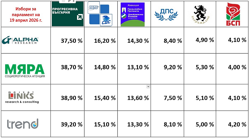 Ето и резултатите на 4-те социологически агенции: