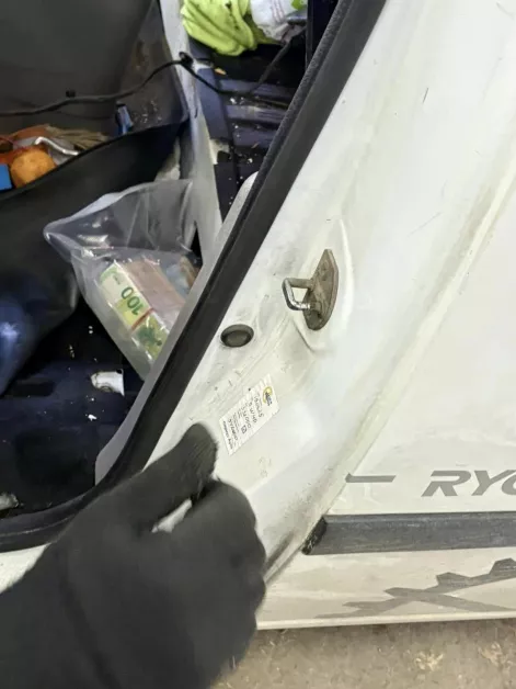 Съдържанието на единия от укритите пакети е бяло кристално вещество с тегло около 1 килограм (985 грама), реагирало на метамфетамин. В другия са открити множество евробанкноти с различен номинал, като общата им стойност възлиза на 84 500 хиляди евро.