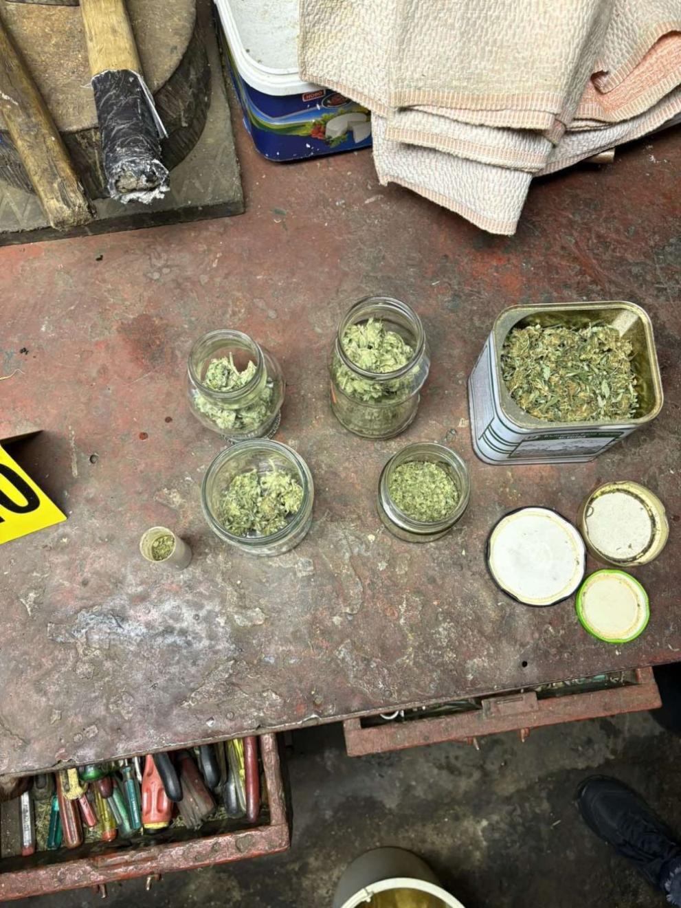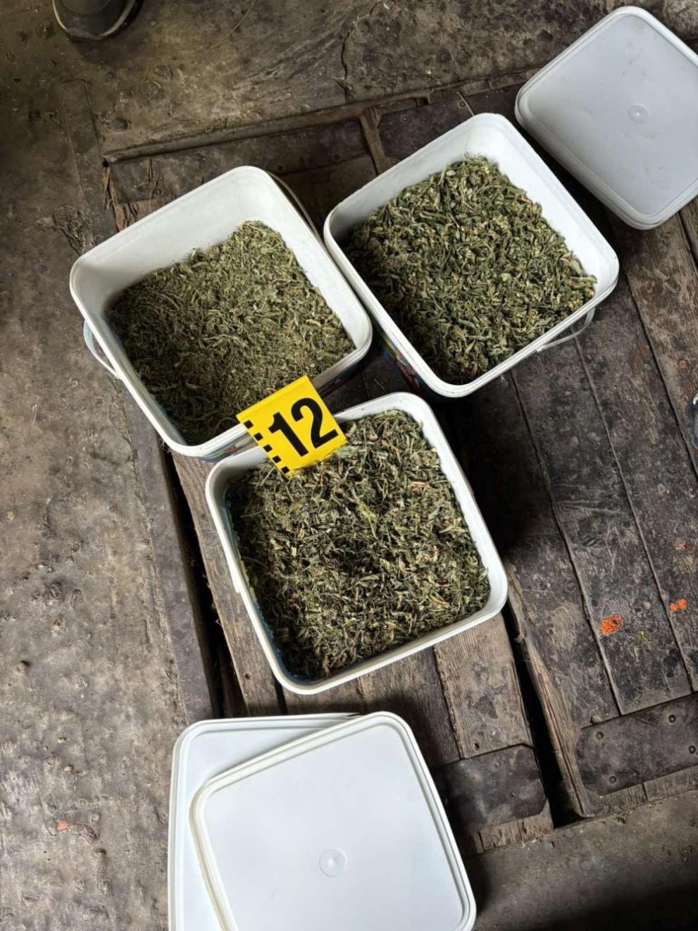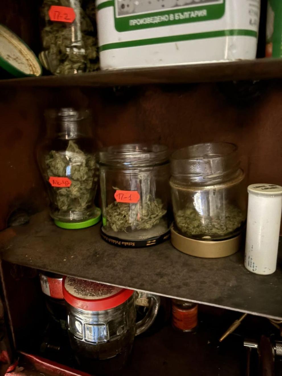 Открити били още шест стъклени буркана, метална кутия, три пластмасови кофи, пълни с марихуана, както и метална кутия, съдържаща конопени семена.