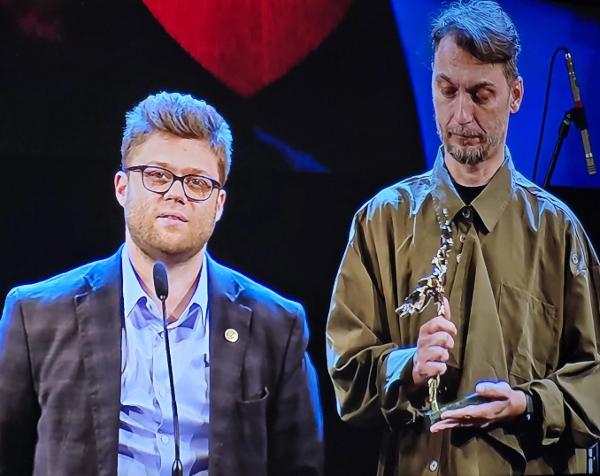 „Благодаря на САБ за признанието, на водача на дирижабъла Диана Добрева, на семейството ми, на моята почва Драматичен театър-Пловдив, на моя музикален брат Сашко Костов. Обичам ви“, каза Карагитлиев.