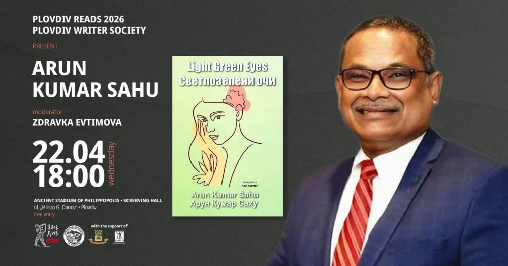 Фестивалът "Пловдив чете" и Дружеството на пловдивските писатели канят на среща с Н. Пр. Арун Кумар Саху, посланик на Индия в Република България и Северна Македония, и премиера на книгата му "Светлозелени очи" на 22 април от 18 ч. в прожекционната зала на Римския стадион. В представянето ще се включи и писателката Здравка Евтимова.