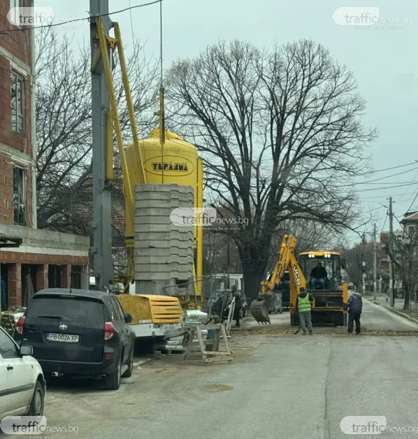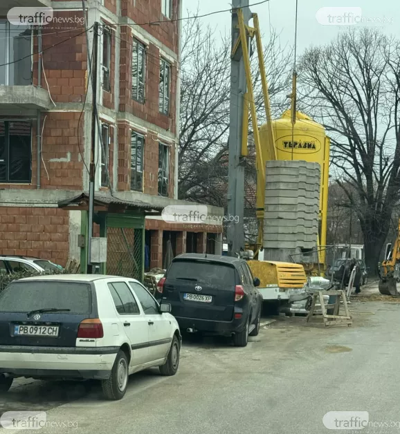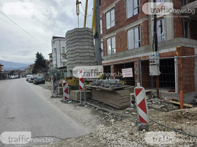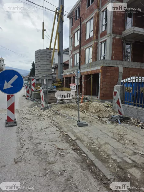Днес на обекта има и багер, както и нови купчини със строителни материали, които възпрепятстват преминаването.