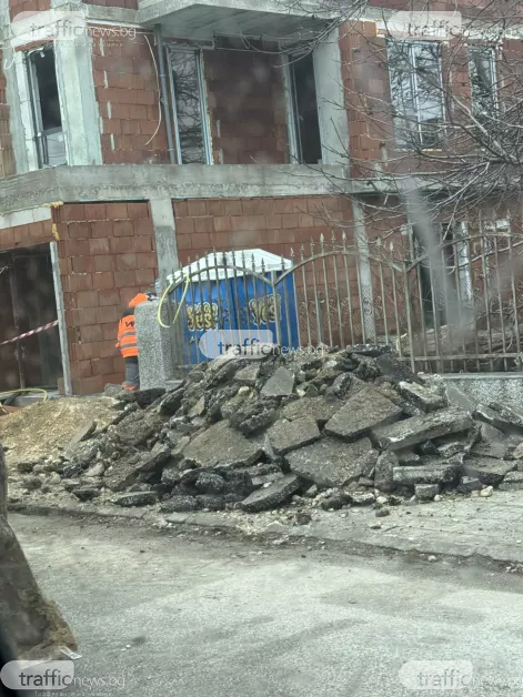 "Преди повече от месец изкопаха асфалта, за да присъединят обекта, но в последствие насипаха с чакъл и пътят остана разбит. Понеже в миналото е имало много такива случаи, в които пътното платно си носи белезите доживотно след "добри инвеститорски практики", се обръщаме към вас. Тротоарът е напълно блокиран, няма никаква информация кой и какво строи", посочи нашият читател.