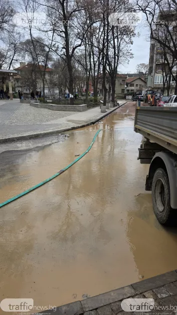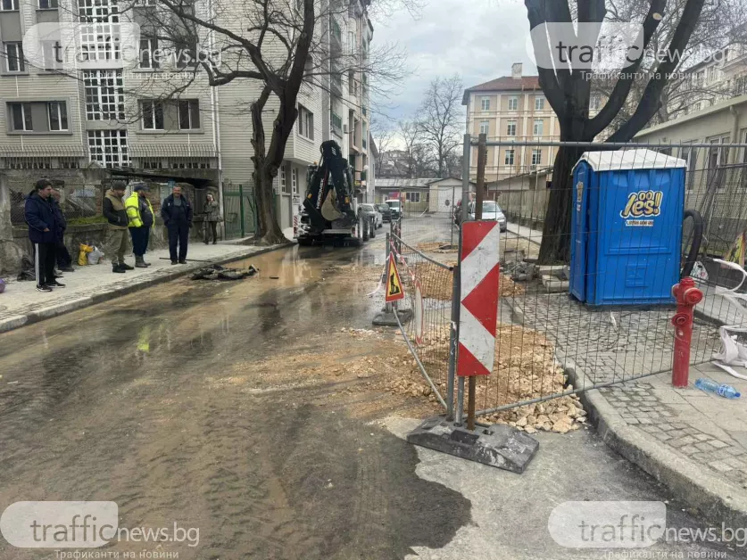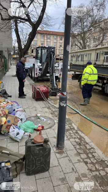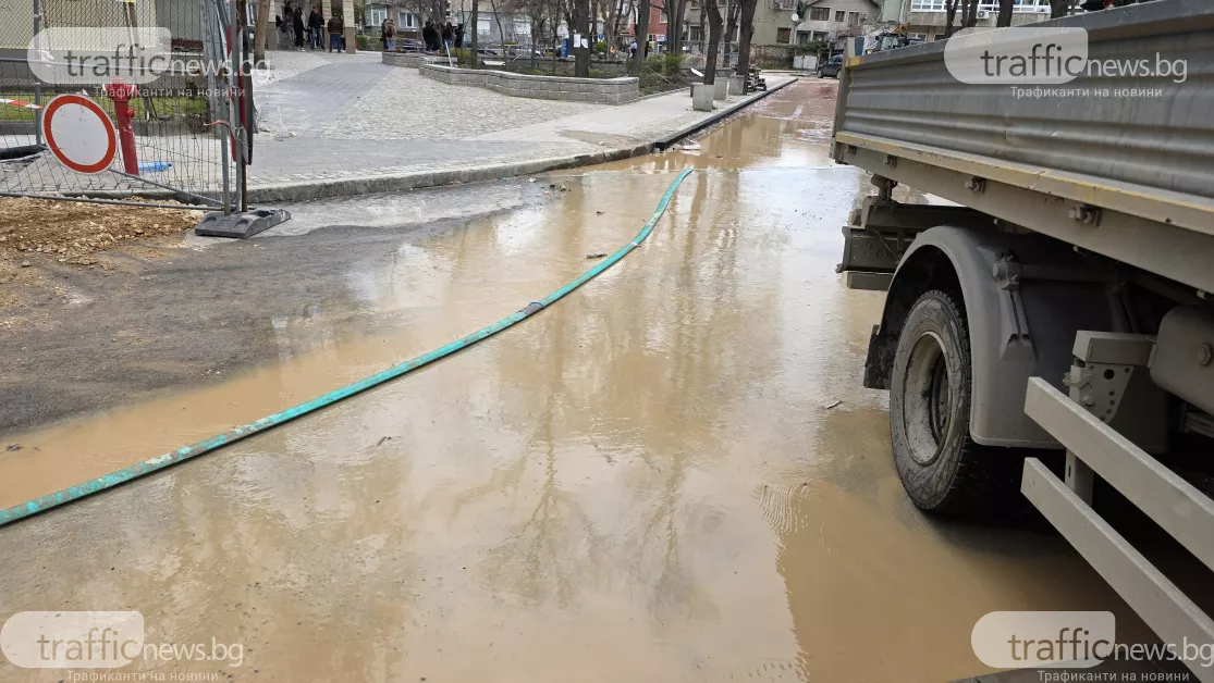Ситуацията с големия пробив на водопровод на улица „Костаки Пеев“ в Пловдив продължава да се усложнява. Днес цялата улица е изцяло наводнена, а водата е проникнала и в мазетата на живеещите в района. Водоподаването на стотици домакинства отново е спряно до пълното отстраняване на повредата.