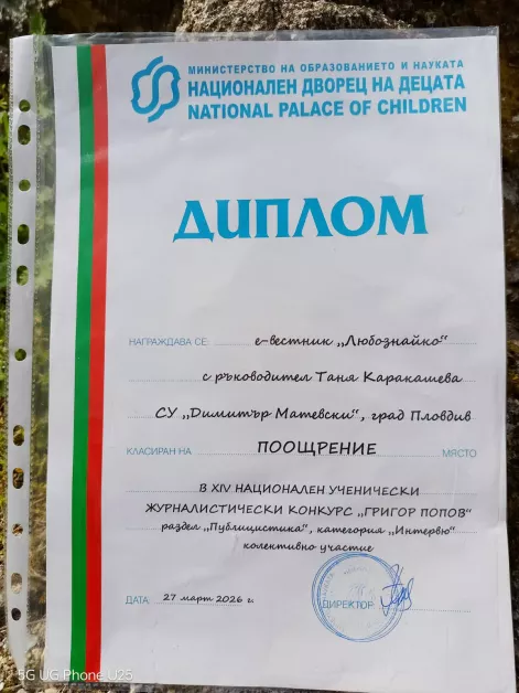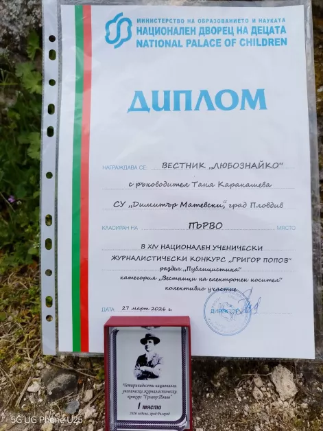 Освен това успехът тази година е част от впечатляваща поредица. За шест години е-вестник „Любознайко“ вече има общо осем награди от конкурса „Григор Попов“ – две първи места, три втори, две трети и едно поощрение. Сред отличените им интервюта са разговори с писателките Мария Гъркова и Петя Кокудева, с кмета на район „Тракия“ Георги Гатев, както и със Слави Панайотов.