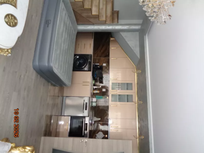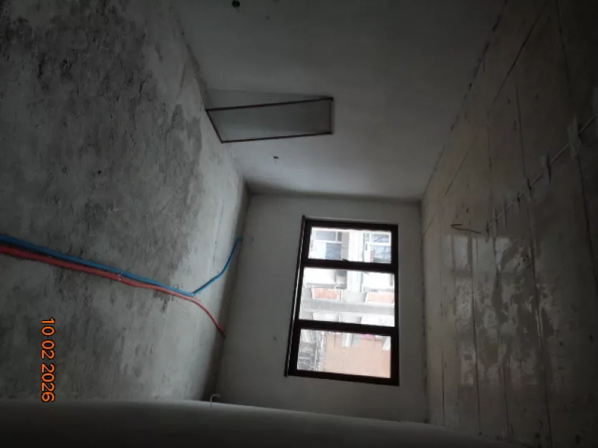От публикуваните снимки личи, че само едно от нивата е частично завършено – оформени са дневна с кухненска част и баня, докато останалите етажи са оставени на етап груб строеж.
