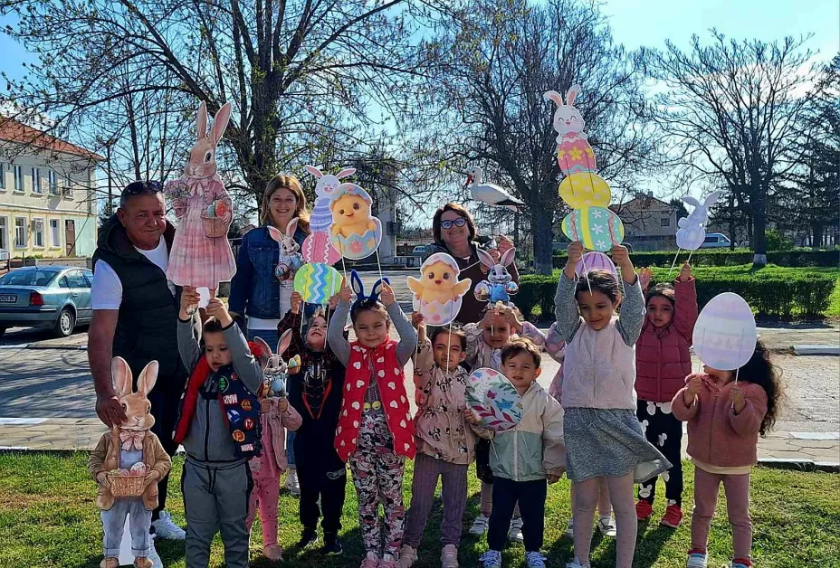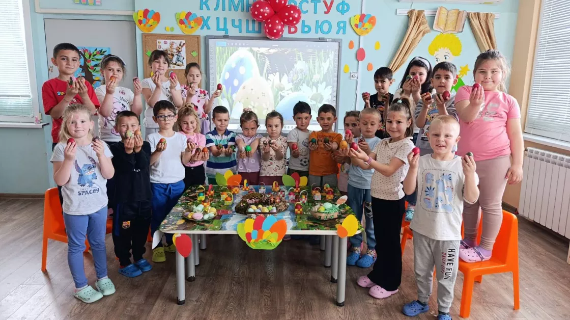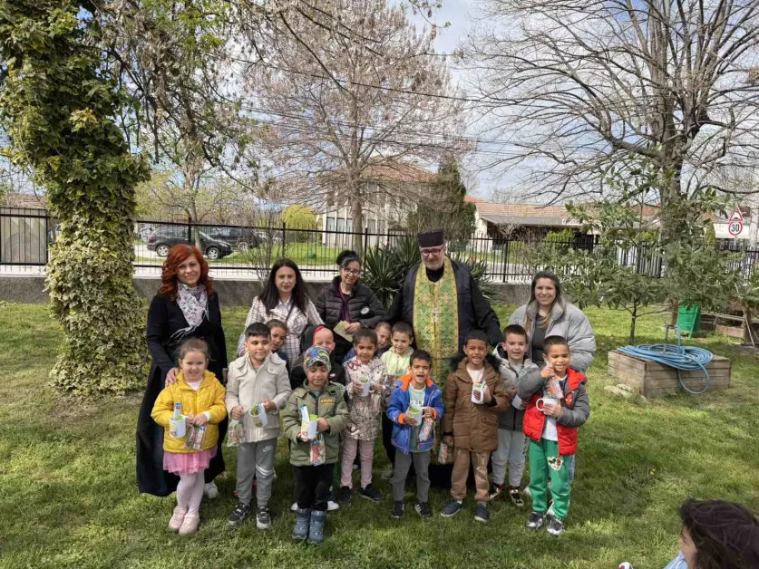 Дворът на църквата в Скутаре се превърна в цветна работилница за децата от трета група „Цар Лъв“ на ДГ „Синчец“. Малчуганите с вълнение боядисаха първите си великденски яйца. Денят започна с литургия и благословия на отец Николай, a oт кметството на селото помогнаха празникът да е специален за малчуганите, съчетавайки вяра, традиции и детски усмивки.