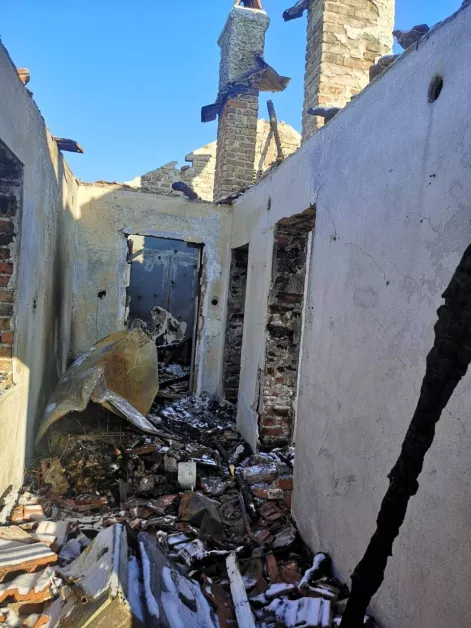 Къщата е на два етажа, като при пожара напълно са изгорели покривът и целият втори етаж. Унищожени са стаите, обзавеждането, покъщнината и личните вещи на семейството. Сградата е сериозно увредена и в момента е непригодна за обитаване.
