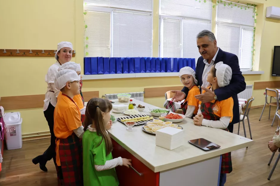 В края на събитието най-малките ученици впечатлиха гостите с кулинарни умения, като приготвиха качамак със сирене, червен пипер и рукола, както и малки хапки с домат, шунка и кашкавал. 7-годишната Василена разказа как любознателните ученици от Труд прилагат своите умения.
