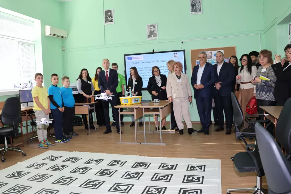 При откриването ученици демонстрираха възможностите на дроновете, които ще ползат в часовете. 13-годишната Габриела Георгиева показа изработка на плочка с 3D принтер, като обясни как софтуерът генерира модел, който при температура от 220 градуса се превръща във фигура само за 7 минути. Гостите видяха и различни детайли, създадени от учениците с помощта на съвременните технологии.