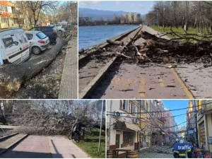 По-рано през деня бяха регистрирани паднали огромни дървета по алеите на Гребната база, в квартал Капана, както и на редица ключови точки и булеварди в града.