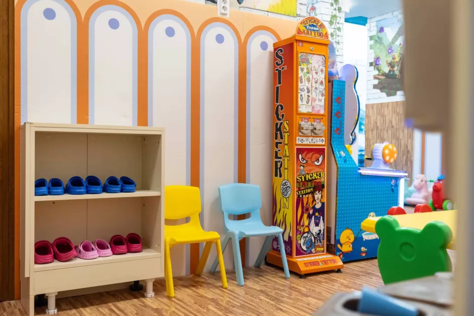 Центърът е част от популярния AMORE Pizza Restaurant и има топла връзка с него – така родителите могат спокойно да се насладят на вкусна храна и уютна атмосфера, докато децата играят, творят и се забавляват само на крачка разстояние.