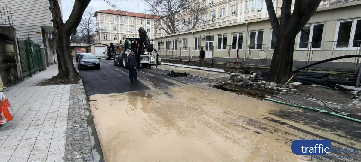 Рано в съботния ден голяма ВиК авария остави без вода жителите на улица "Костаки Пеев" в района на Пловдивския университет „Паисий Хилендарски“. Причината е спукан водопровод. За да се отстрани повредата, в момента екипите на ВиК режат и разкопават чисто нов асфалт, положен буквално преди няколко дни.