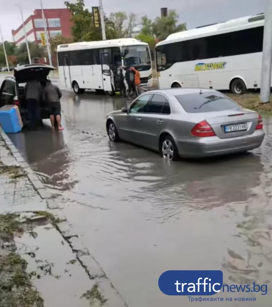 Хаос по пътищата в Пловдив, дъждът парализира движението