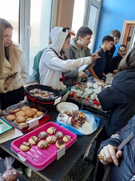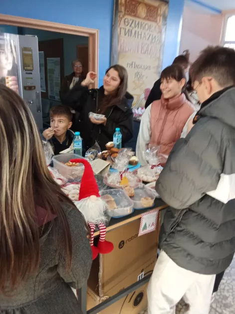 Тя добави, че Коледният благотворителен базар продължава три дни, като в него се включат ученици, учители, членове на непедагогическия персонал на училището и родители. На специални щандове децата предлагат създадени от тях хранителни продукти и сувенири, а през тази година е имало и фото будка, в която желаещите са можели да се снимат с коледни шапки.