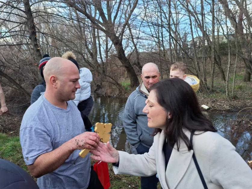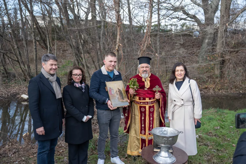 Богоявление е един от най-големите християнски празници, символ на пречистването, просвещението и светлината. По този повод отец Иван от храма „Св. Атанасий“ отслужи Велик водосвет за здраве и плодородие на брега на река Първенецка. На празничния ритуал присъстваха Тони Стойчева, кмет на район „Западен” и жители на кв. „Прослав“, които с вълнение наблюдаваха хвърлянето на светия кръст във водите на реката.