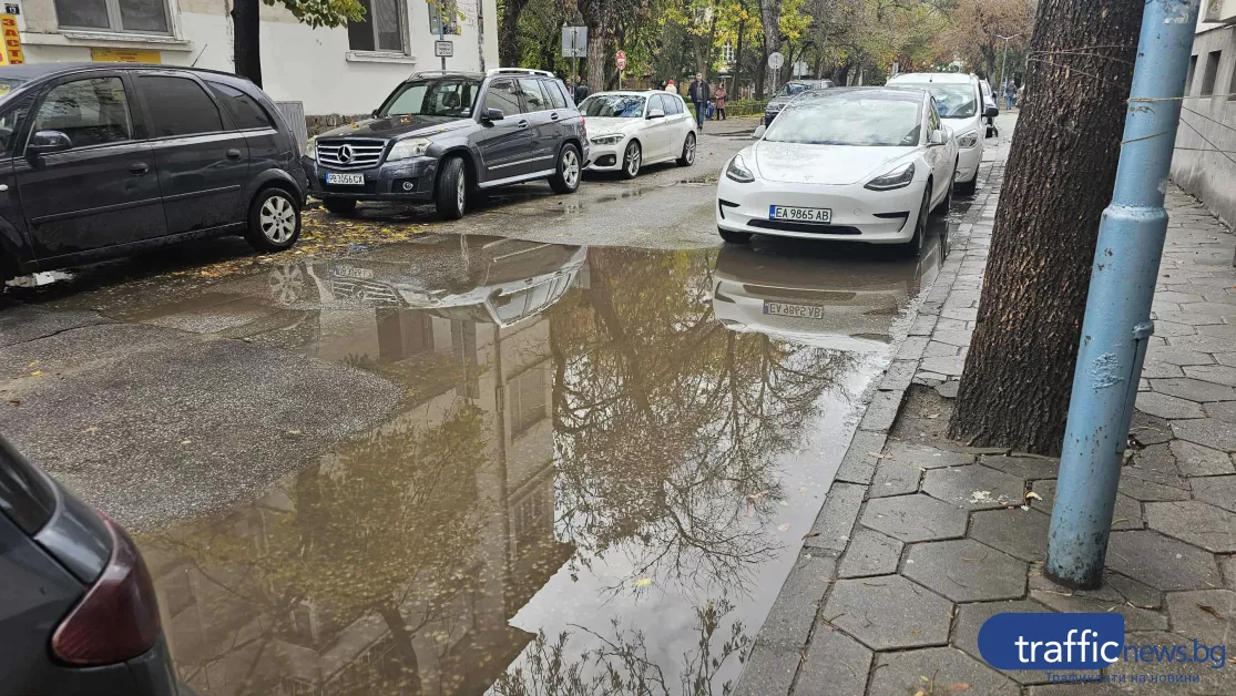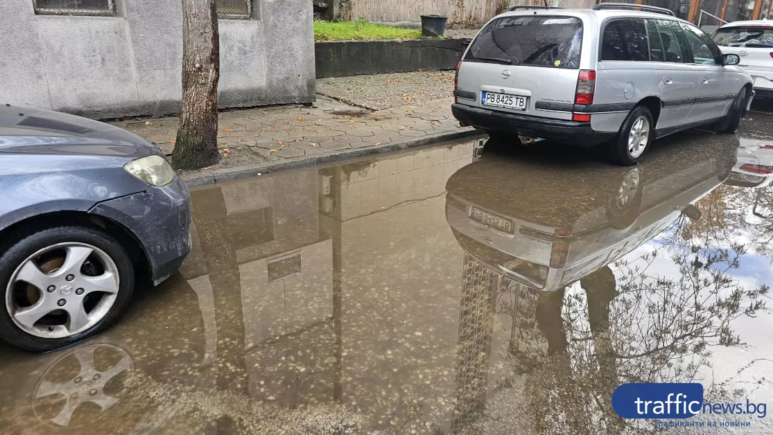 Дъждът отново създаде проблем за шофьори и пешеходци в Пловдив. Въпреки че падналите количества не бяха значителни, голяма част от по-малките улици в града тази сутрин приличаха на езера.
